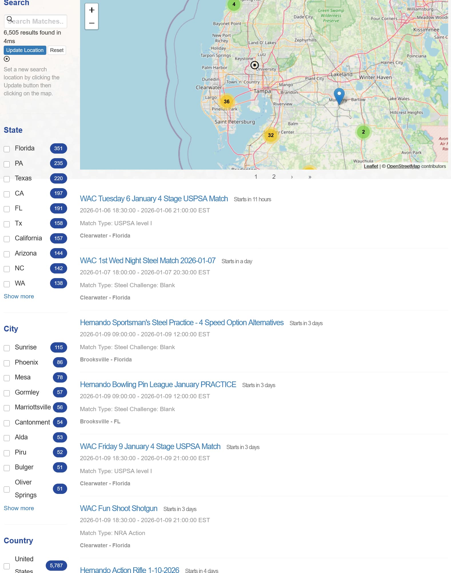 Then changed location to Tampa.